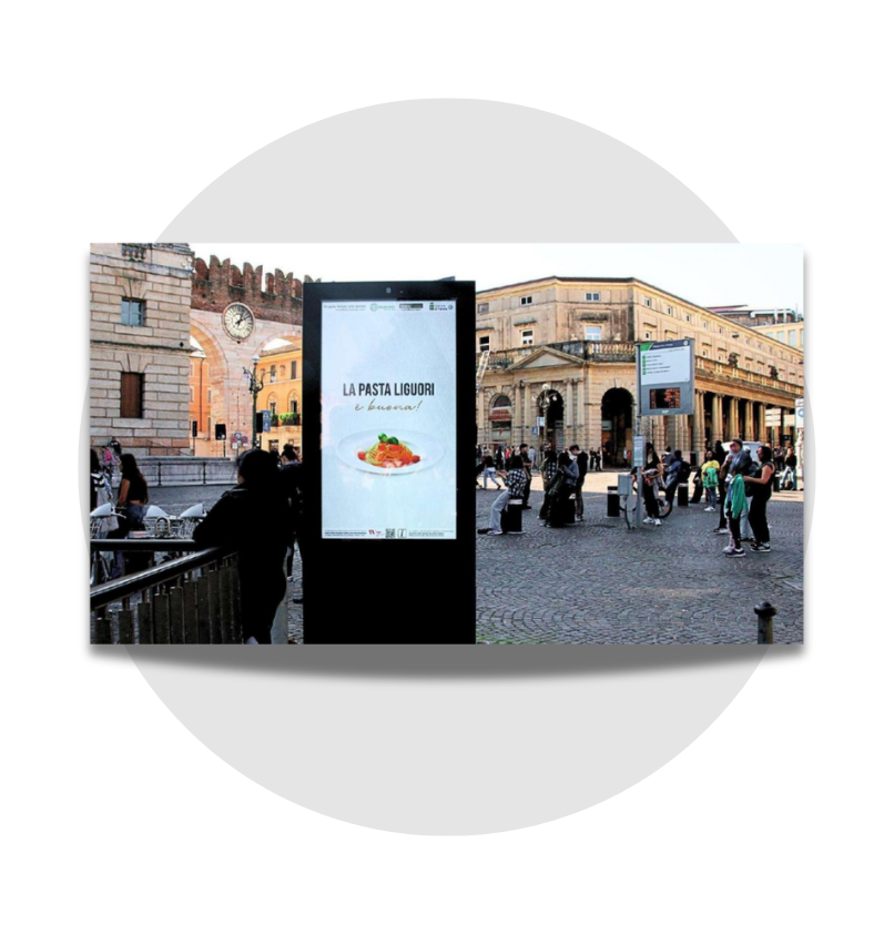 La tua comunicazione conquista Verona su due fronti: la capillarità cittadina dei Digi Mupi unita al grande impatto del Maxi LED.